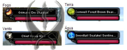 Estes elementos possuem uma cadeia de VANTAGEM/DESVANTAGEM muito simples, mas que muitas pessoas ignoram, e pode fazer a diferença em uma luta! Você pode checar o elemento dos MOBs ao clicar nele. Ao lado do nome fica uma pequena bolinha. Ela representa o elemento.